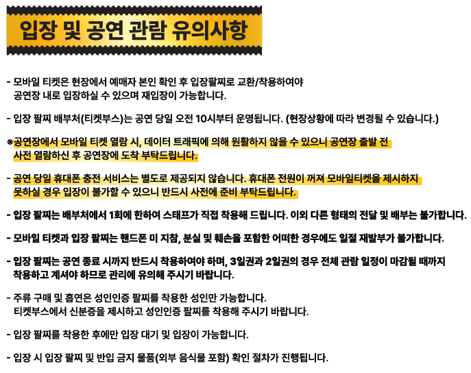3. 현장 판매: 공연 당일, 남은 티켓 한정 판매(매진 시 불가).
